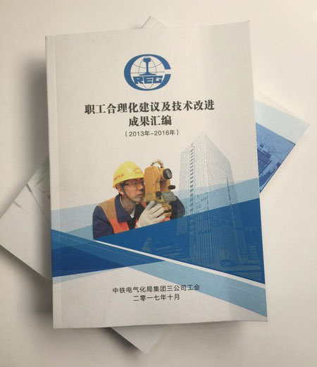 鄭州畫冊印刷廠用精品紙印刷的匯編手冊職工合理化建議及技術(shù)改進成果匯編(2013年-2016年)中鐵電子化局集團三公司工會